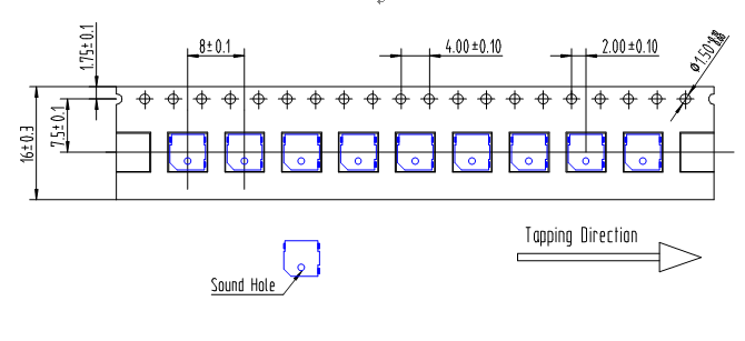 Note: (1) In automated mounting of the SMD sound transducers on PCB, any bending, expanding