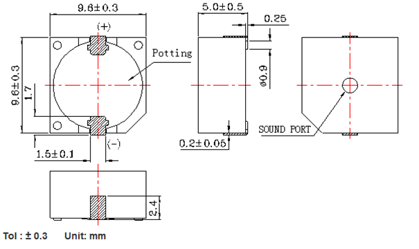 Note: (1) In automated mounting of the SMD sound transducers on PCB, any bending, expanding