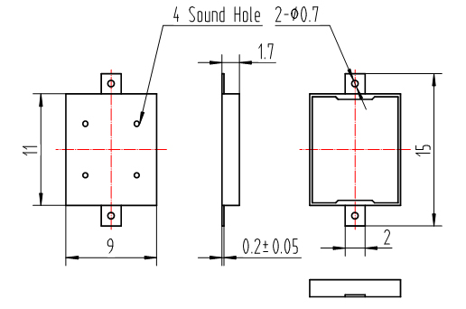 | 4 | 輸出音壓(dB)10cm | Min. 75dB,at 4.1KHz 50% duty Square Wave 5Vp-p |