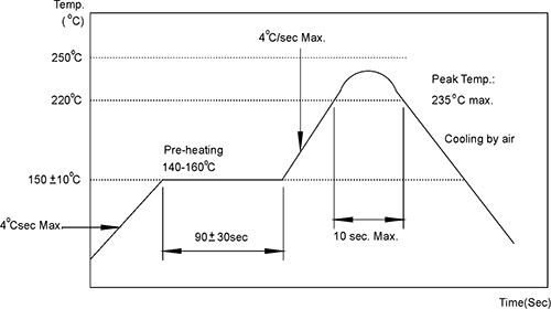 注意事項(xiàng): (1) 產(chǎn)品經(jīng)過(guò)回流焊機(jī)后,所有電性能要保持在規(guī)格書(shū)的范圍內(nèi)。